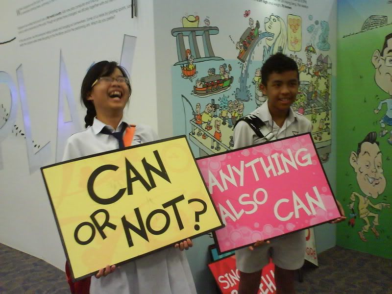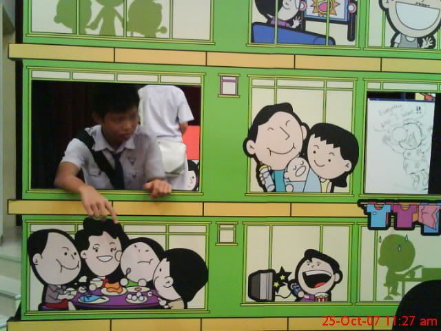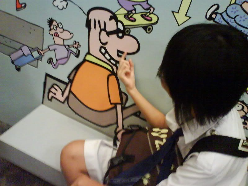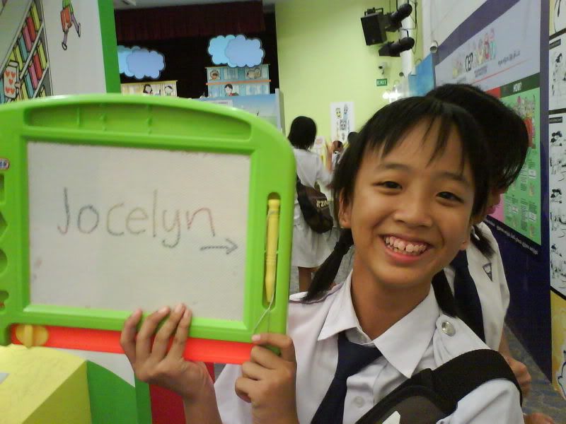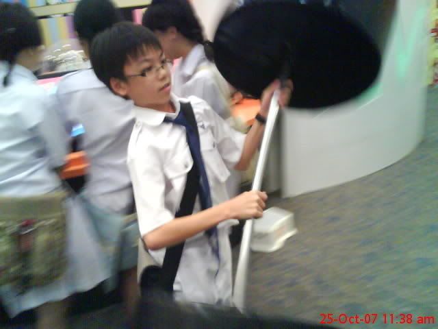 date: Friday, October 26, 2007 time:1:49 PM I'm back! Yesterday Went to Discovery Centre. Boringggg~ Took the bus to Discovery Centre and sat beside Yunru. :D Reached there and Yunru suddenly said,"LOOK! Keean over there!" I was like,"Where?" This was what she pointed to: -.-" The first thing we did was watch a movie about people who climbed Mt. Everest in a theatre. It was quite interesting? Then had an introductry tour of the place which was quite useless since most of the us weren't listening. Why not let us explore the place on our own? -.-" Following that, we had our free time which was less than 15 minutes. So we didn't manage to see much. Then we went on the SAFTI bus tour. After that, went the So-Singapore place. Had loads of fun there and took loads of pictures. ;D I shall let the pictures speak for themselves. Okay, so this isn't related but she's so cute! xD |